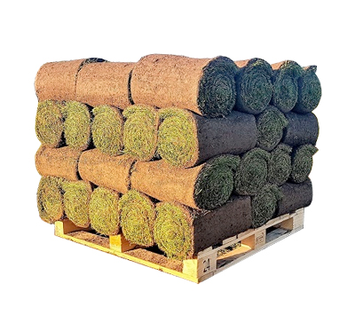 - Siirtonurmi irrotetaan 40 x 250 cm suuruiseksi matoksi, joka rullataan tiukaksi noin 15 kilon painoiseksi nurmikääreeksi. Yhdelle kuormalavalle mahtuu 50 neliötä siirtonurmea.